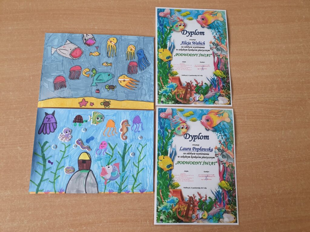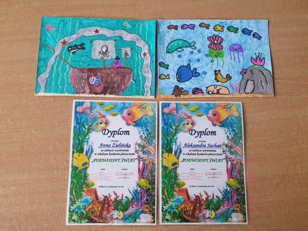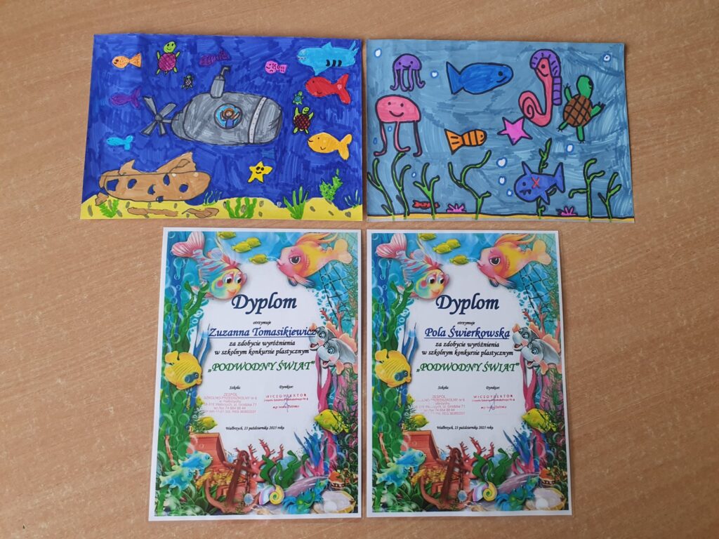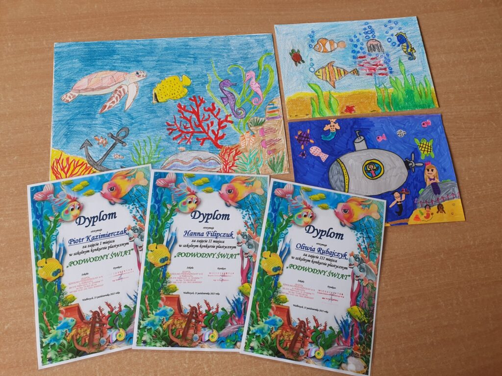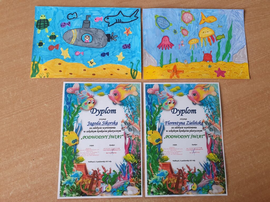 Dnia 23 października 2025 roku odbyło się rozstrzygnięcie szkolnego konkursu plastycznego „PODWODNY ŚWIAT”. Konkurs adresowany do najmłodszych uczniów naszej szkoły z klas I – III zorganizowały panie ze świetlicy szkolnej. Do artystycznych zmagań zgłoszono 39 prac ukazujących piękno podwodnego życia w morzach i oceanach wykonanych różnorodnymi technikami plastycznymi. Uczestnicy wykazali się niesamowitą wyobraźnią, pomysłowością oraz ogromnym zaangażowaniem.